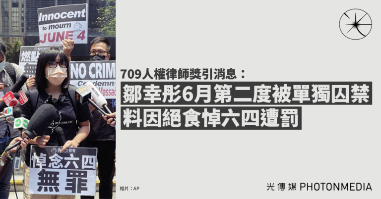 709人權律師獎引消息:鄒幸彤6月第二度被單獨囚禁 料因絕食悼六四遭罰