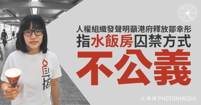 人權組織發聲明籲港府釋放鄒幸彤 指「水飯房」囚禁方式不公義
