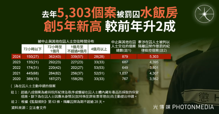 去年5,303個案被罰囚「水飯房」 創5年新高 較前年升2成