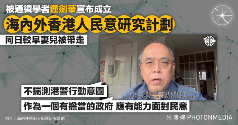 被通緝學者鍾劍華宣布成立「海內外香港人民意研究計劃」 同日較早妻兒被帶走