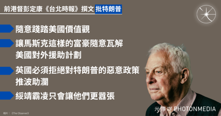 前港督彭定康彭定康昨(5日)在《台北時報…