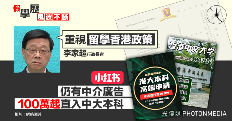 李家超:重視「留學香港政策」小紅書仍有中介廣告 100萬起直入中大本科