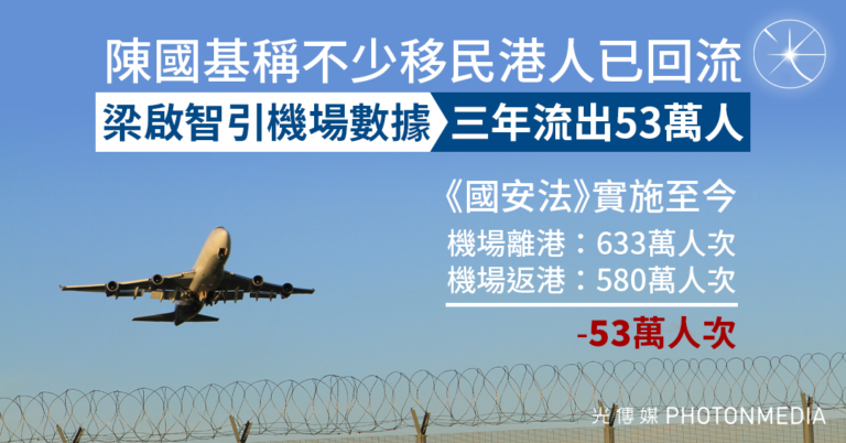 陳國基稱不少移民港人已回流 梁啟智引機場數據:三年流出53萬人