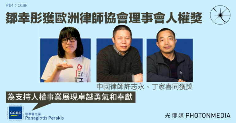 鄒幸彤獲歐洲律師協會理事會人權獎 主席:為支持人權事業展現卓越勇氣和奉獻