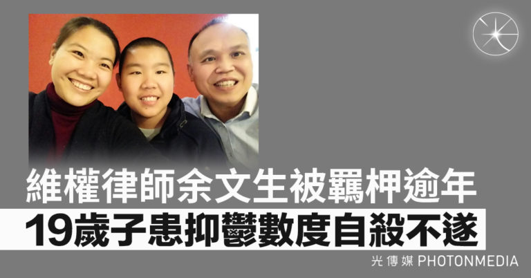 維權律師余文生被羈柙逾年 19歲子患抑鬱數度自殺不遂