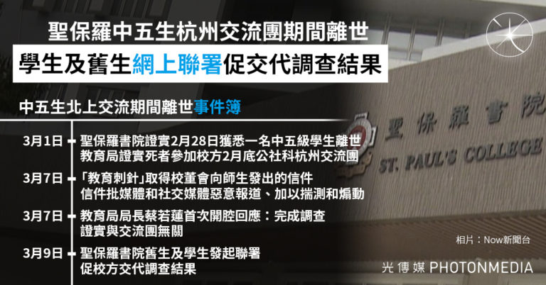 聖保羅中五生杭州交流團期間離世 學生及舊生網上聯署促交代調查結果