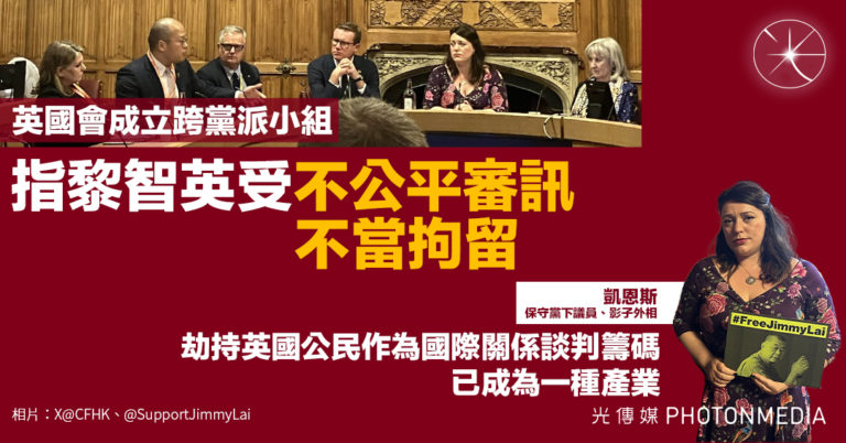 英國會成立跨黨派小組|促英政府關注人質事務 指黎智英被不當拘留