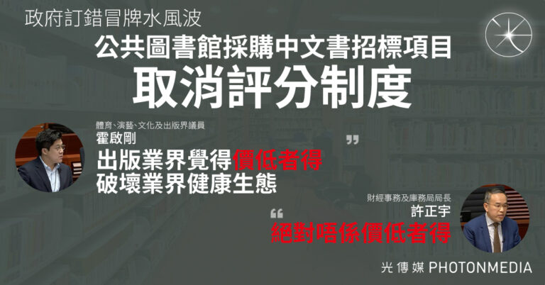 公共圖書館採購中文書招標項目取消評分制度 許正宇:絕對唔係價低者得