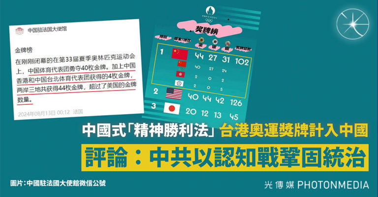 中國式「精神勝利法」 台港奧運獎牌計入中國 評論:中共以認知戰鞏固統治