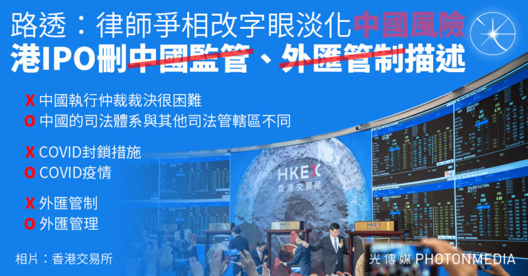 路透:律師爭相改字眼淡化中國風險 港IPO刪中國監管、外匯管制描述