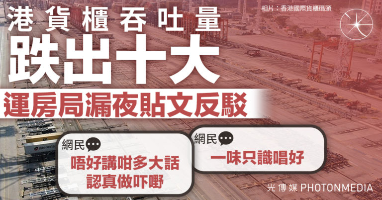 港貨櫃吞吐量跌出十大 運房局漏夜貼文反駁 網民:一味只識唱好 唔好講咁多大話 認真做吓嘢
