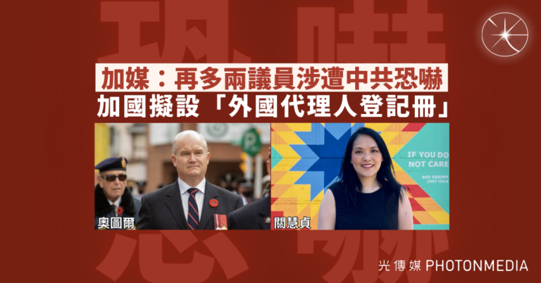 加媒:再多兩議員涉遭中共恐嚇 加國擬設「外國代理人登記冊」