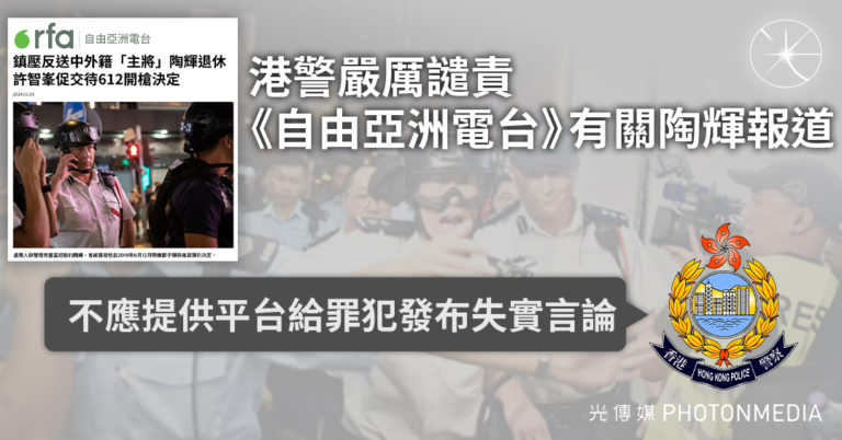 港警嚴厲譴責《自由亞洲電台》有關陶輝報道:不應提供平台給罪犯發布失實言論