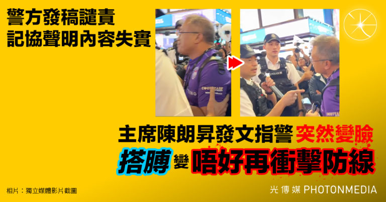 警方發稿譴責記協聲明內容失實 主席陳朗昇發文指警突然變臉 搭膊變「唔好再衝擊防線」