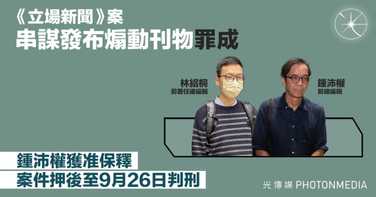 《立場新聞》案 串謀發布煽動刊物罪成 鍾沛權獲准保釋 案件押後至9月26日判刑