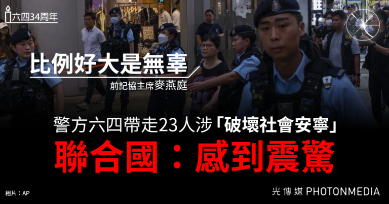 警方六四帶走23人涉「破壞社會安寧」 聯合國:感到震驚