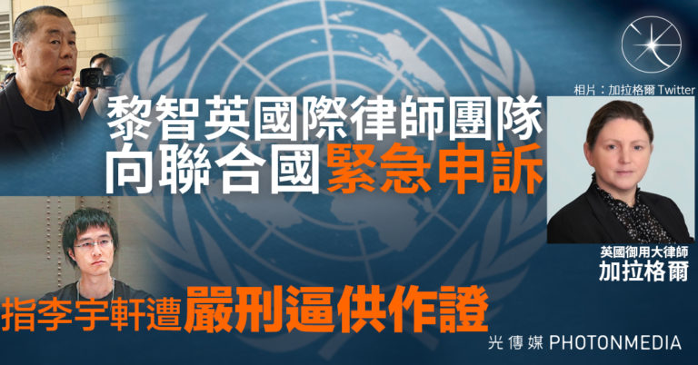 黎智英的國際律師團隊昨(4日)向聯合國酷…
