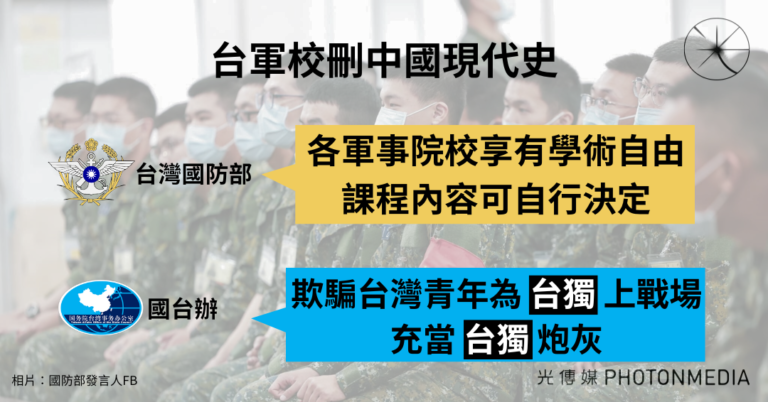 台灣日前傳出軍事院校將刪除「中國現代史…