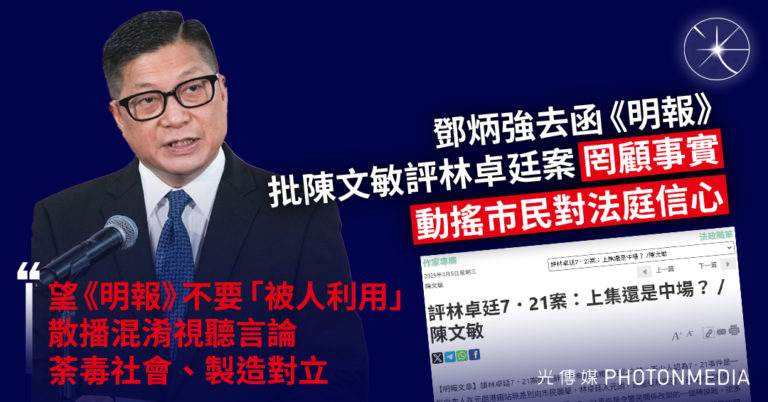 保安局局長鄧炳強今(5日)去函《明報》,…