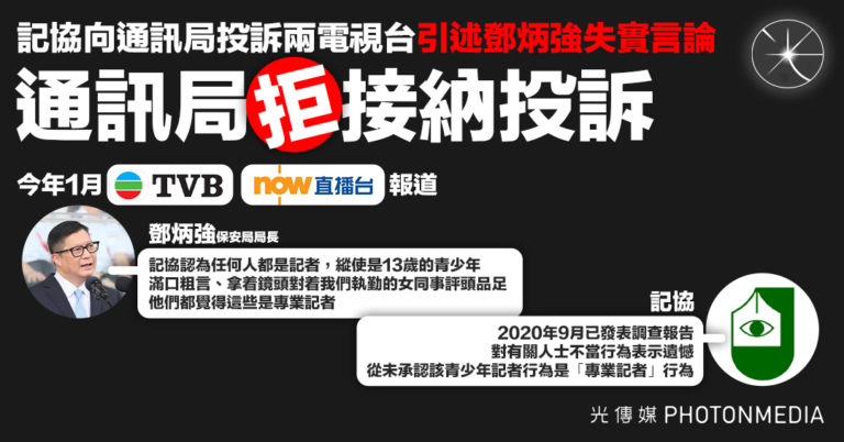記協2月向通訊局投訴兩電視台引述鄧炳強失實言論 通訊局拒接納投訴
