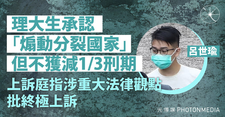 理大生認「煽動分裂國家」不獲減1/3刑期 上訴庭指涉重大法律觀點批終極上訴