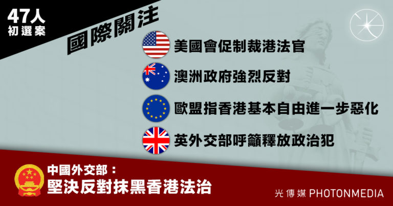 47人初選案〡國際關注 美國會促制裁港法官 澳政府強烈反對 中國外交部:堅決反對抹黑香港法治