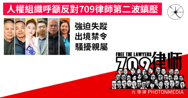 人權組織呼籲反對709律師第二波鎮壓 涉強迫失蹤 出境禁令 騷擾親屬